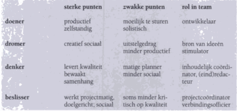 In de afbeelding worden de sterke en minder sterke punten van verschillende rollen die leerlingen kunnen aannemen benoemd. Elke leerling heeft een eigen rol die hem of haar op het lijf is geschreven. Binnen het omgevingsonderwijs komen onderstaande rollen aan bod. Op deze manier ben je bezig met passend onderwijs, je voldoet binnen één les aan de meeste onderwijsbehoefte van de leerlingen.